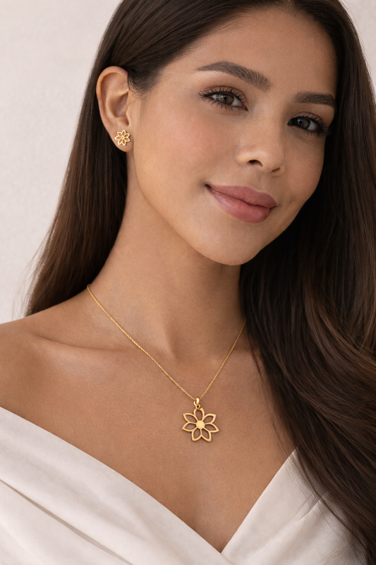 Set collar + aretes flor de loto ajustable