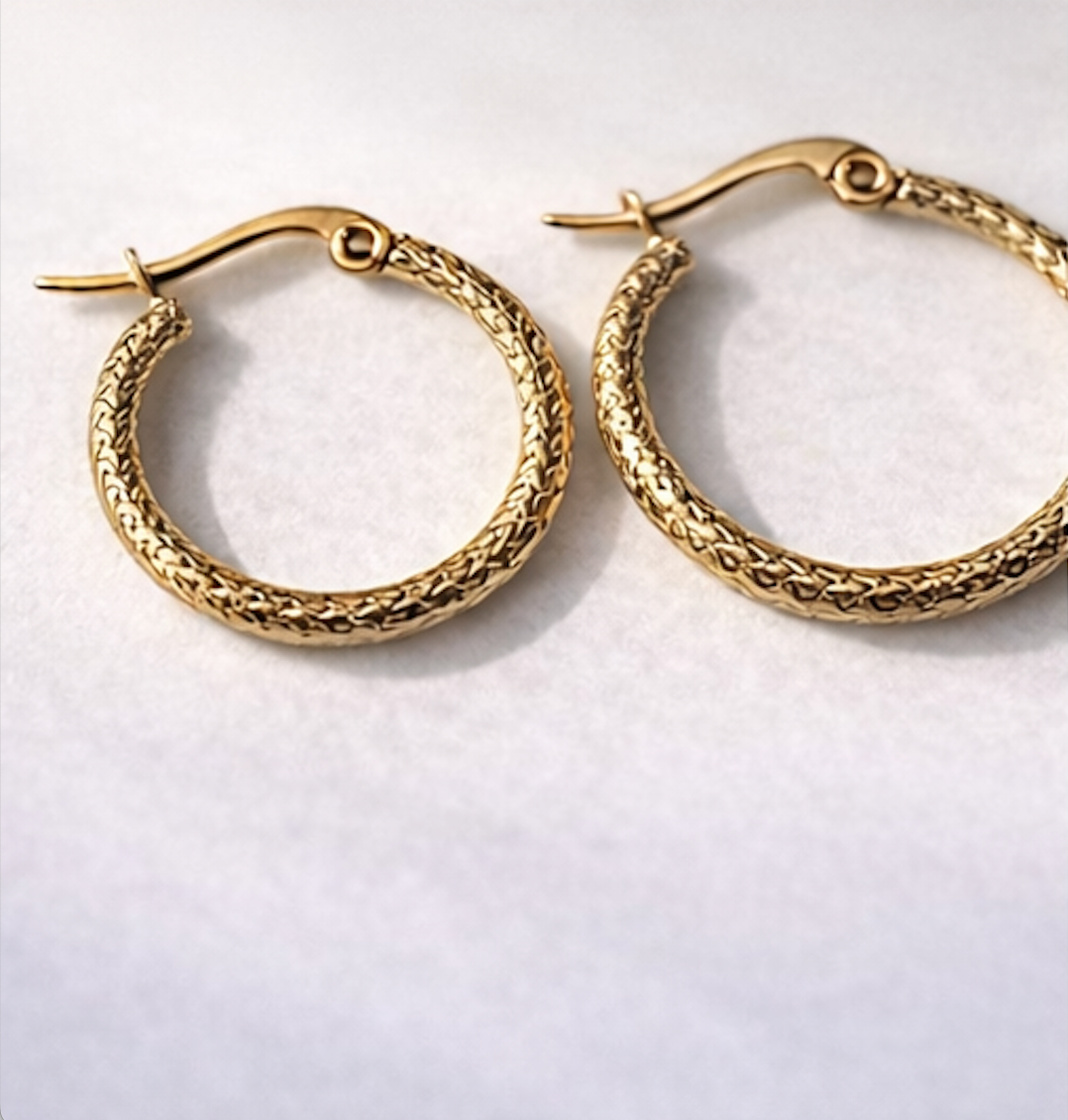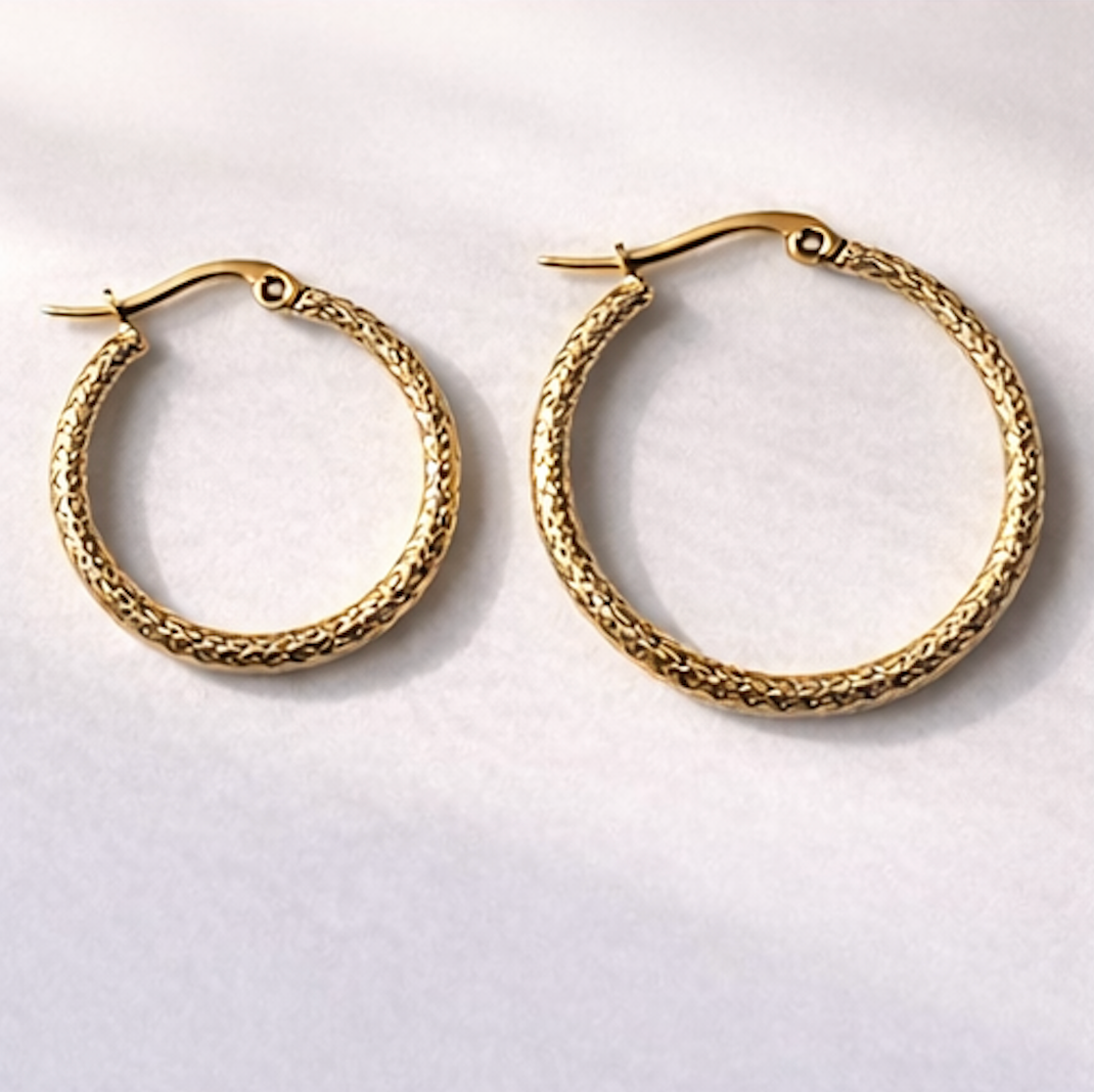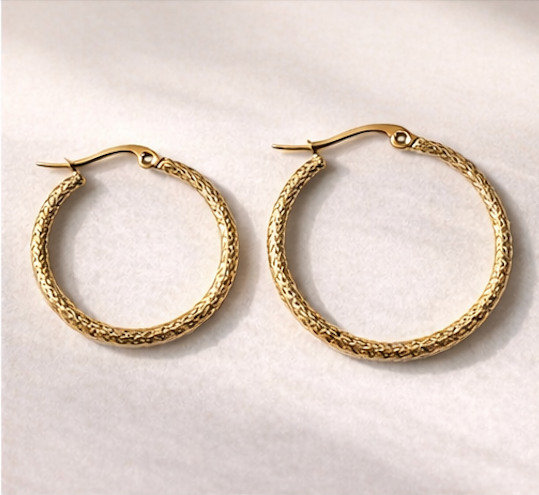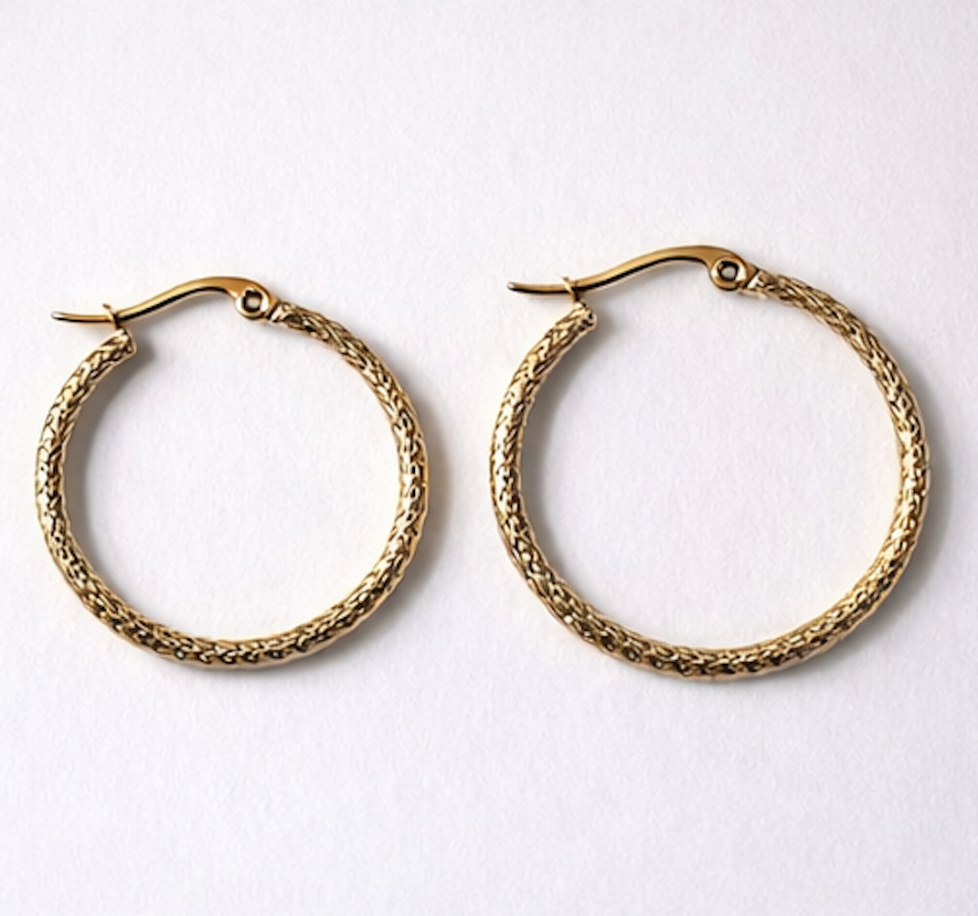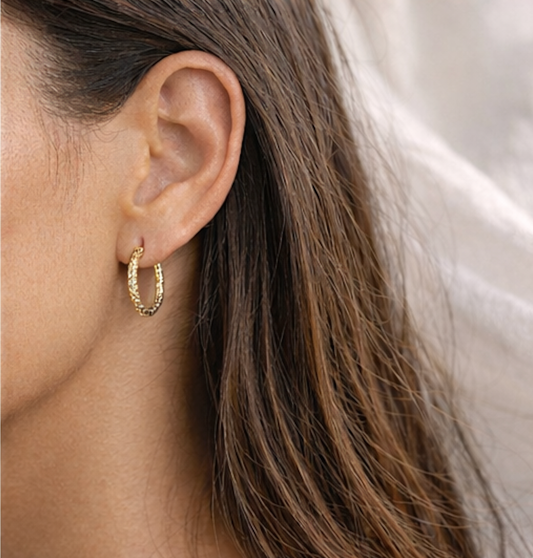 Un básico renovado con textura sutil. Las candongas con diseño de risos aportan dimensión y brillo, logrando un look moderno sin perder versatilidad.