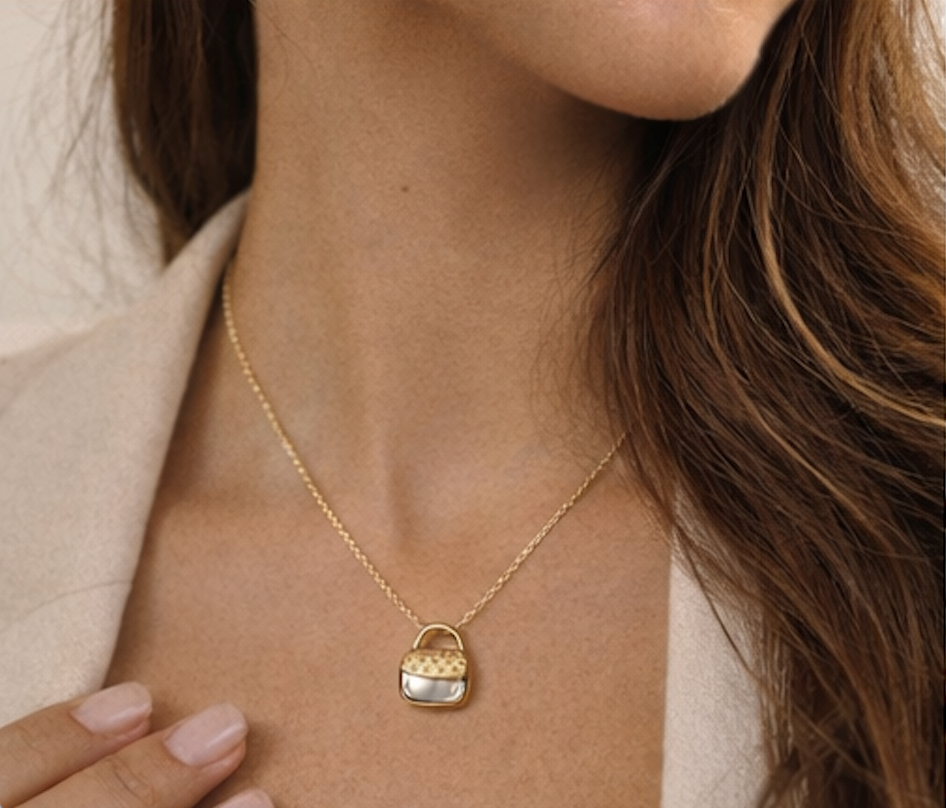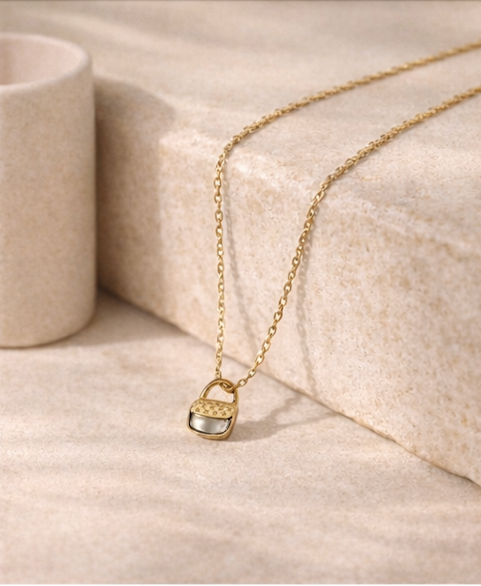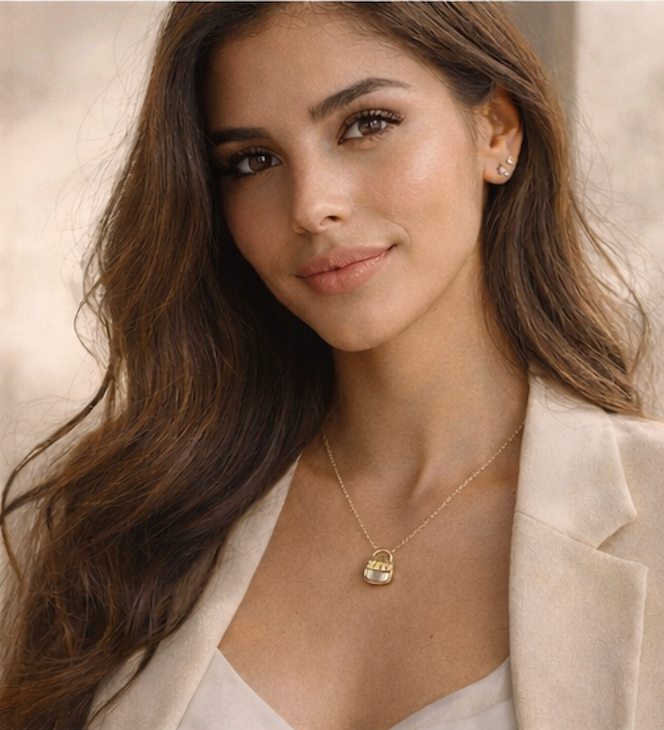 Un diseño delicado y femenino que incorpora un dije en forma de bolso como detalle distintivo. Sutil pero con personalidad, es una pieza pensada para quienes aman los accesorios con carácter.